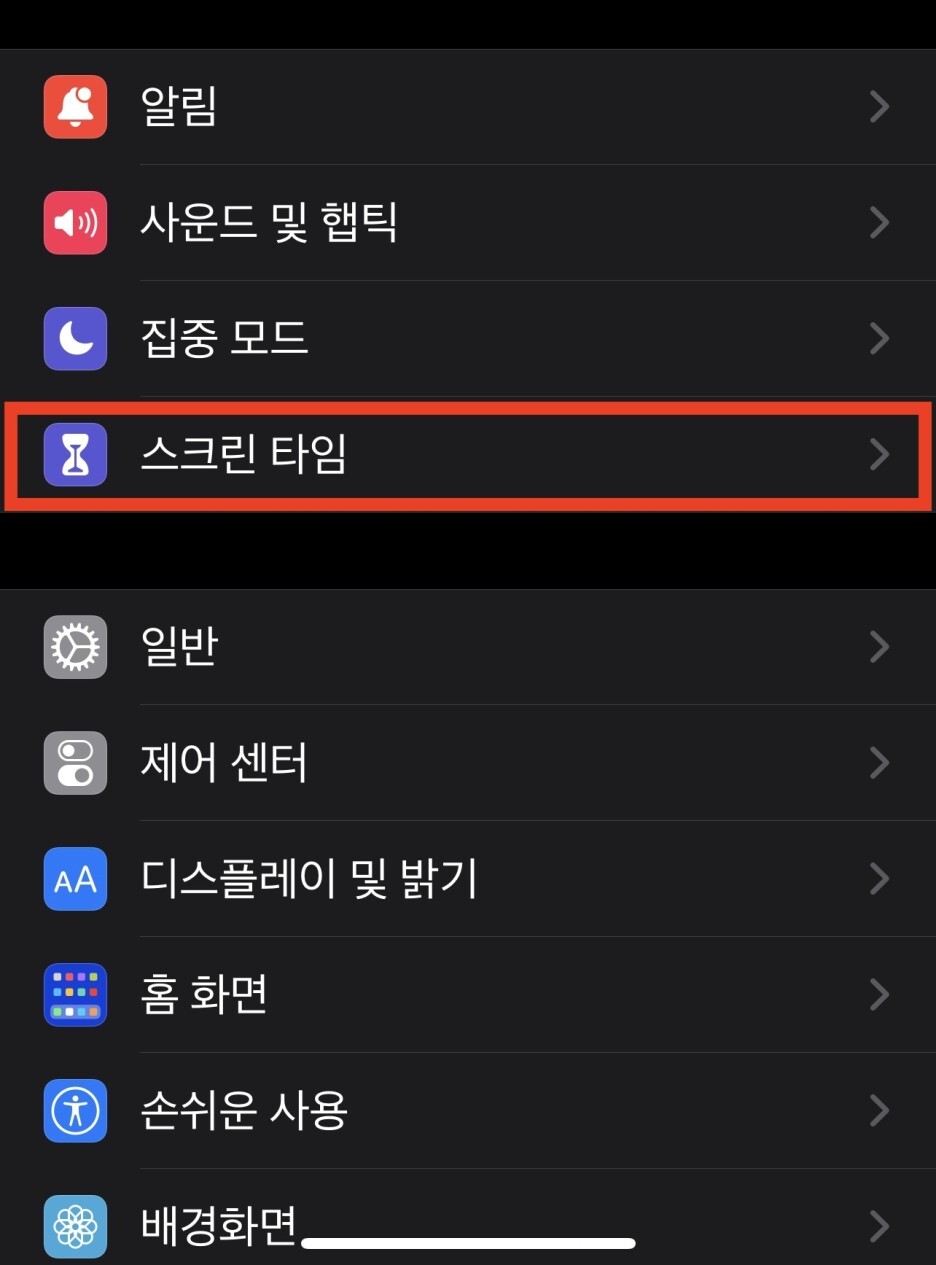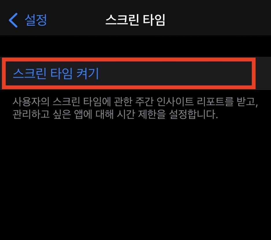 사진 어플 잠그는 방법은, 먼저 설정 - 스크린 타임에 가서 스크린 타임 켜기를 눌러주세요.