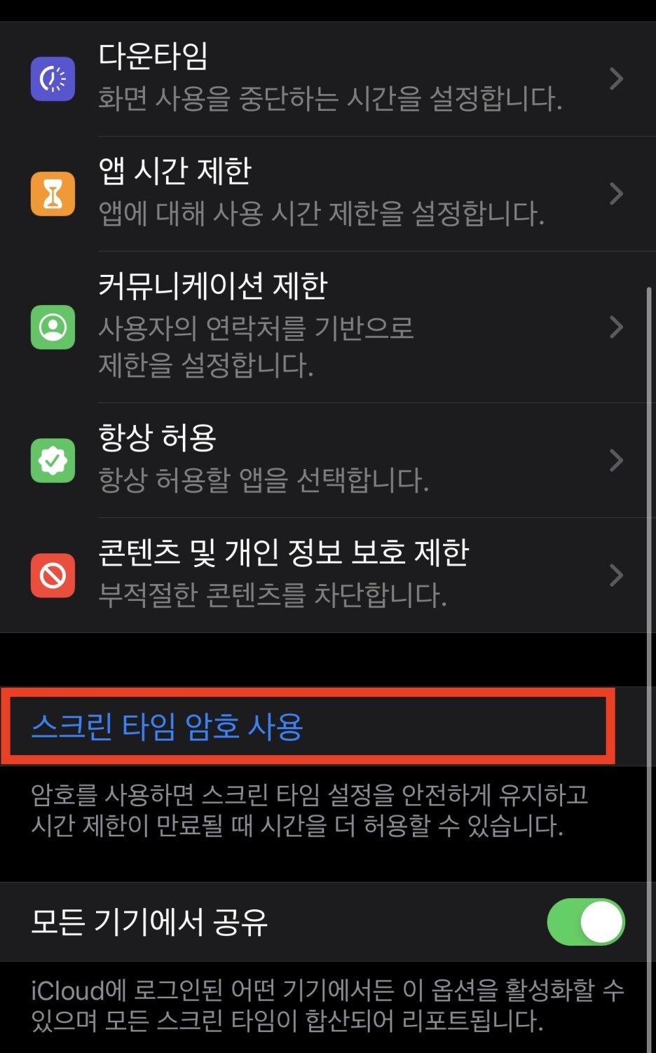 스크린 타임을 켰다면, 가장 먼저 암호를 꼭꼭 설정해주세요. 나중에 암호를 잊어버린 경우에는 애플 계정을 사용하여 암호를 재설정할 수 있으니 애플 계정도 입력해주세요.