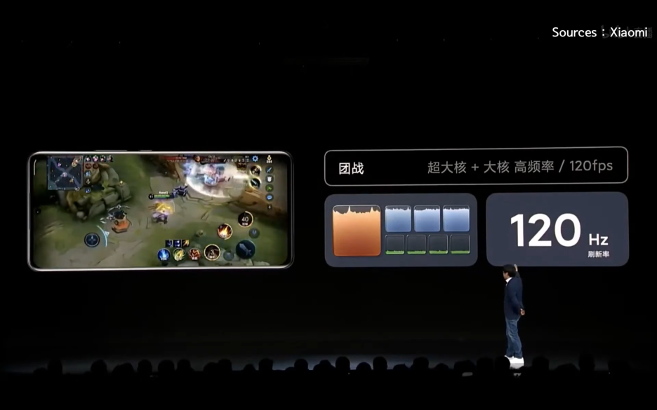 이거는 중국판 롤인데, 게임을 막 실행했을 때는 60프레임, CPU의 고성능코어랑 중간급코어가 열심히 돌아가다가, 캐릭터 고를 때는 CPU가 안정되고, 게임할 때는 다시 고성능코어랑 중간코어가 돌아가면서 주사율도 120프레임로 변합니다. 마지막으로 전 캐릭터들이 한곳에 모여 전투를 할 때는 고성능코어랑 중간코어가 엄청 돌아가는데 역시 120프레임 유지하네요.