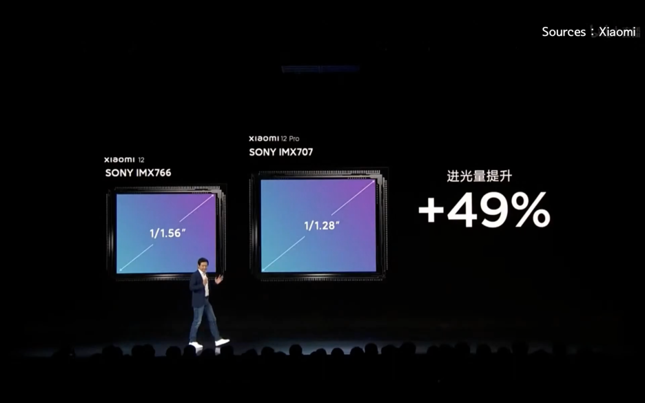 센서의 크기가 큰 게 특징이고, 샤오미12의 소니IMX766에 비해서도 센서가 큽니다. 그래서 빛을 49% 정도 더 받을 수 있어요.