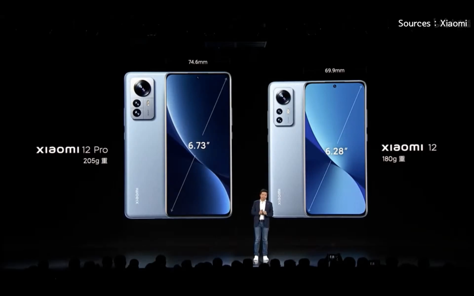 샤오미12와 프로를 비교하면, 샤오미12가 6.28인치 180그램이고, 샤오미12 프로는 6.73인치 205그램입니다.