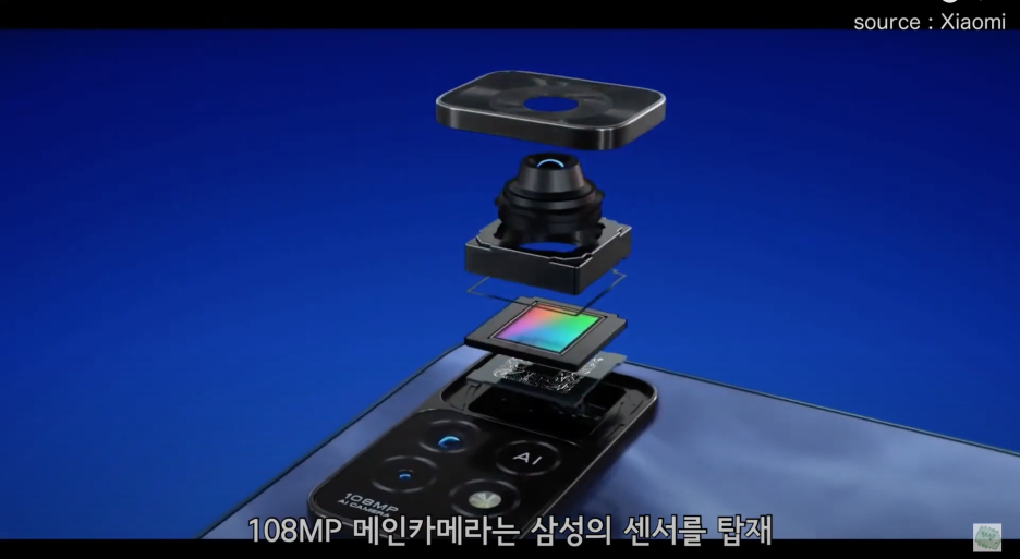 카메라는 역시 108MP 메인 카메라를 포함한 쿼드카메라인데요. 메인 카메라는 삼성의 센서를 탑재했습니다. 다만 역시 근본 없게도 OIS 기능은 없습니다.