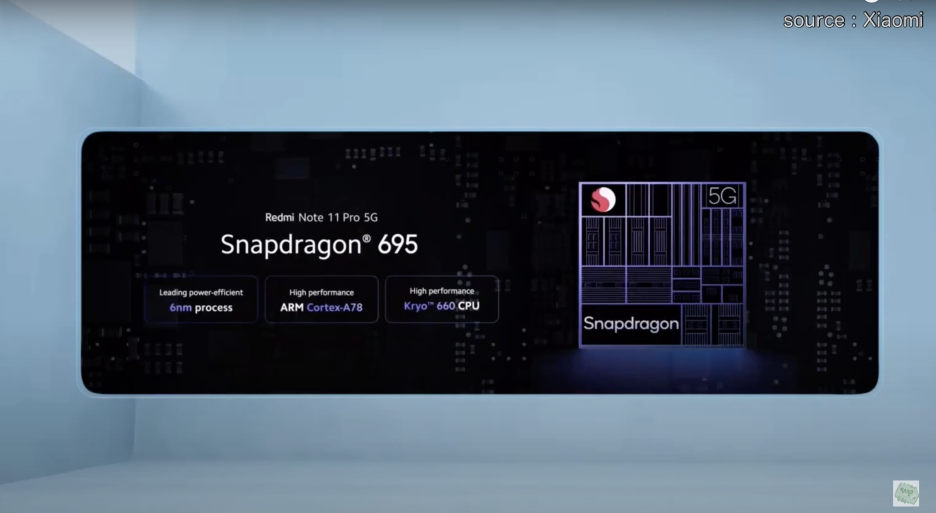 AP는 홍미노트11 프로 5G가 스냅드래곤 695를 탑재했습니다. 플래그십에 거의 근접하는 AP라고 하네요.