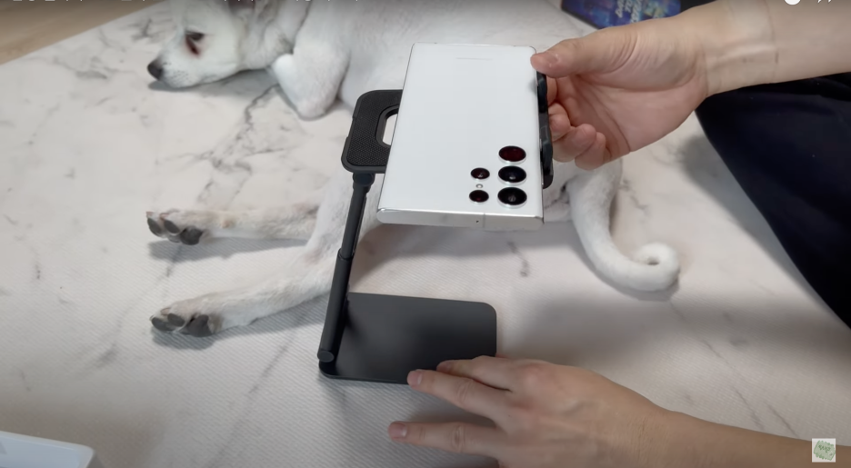 S22 울트라 같은 크고 무거운 폰을 쓰면 손목에 무리가 갈 수밖에 없는데요. 특히 자기 전에 누워서 스마트폰 만지는 게 꿀 아닙니까? 근데 손목이 너무 아파서 이 거치대를 사본 건데 대만족입니다.