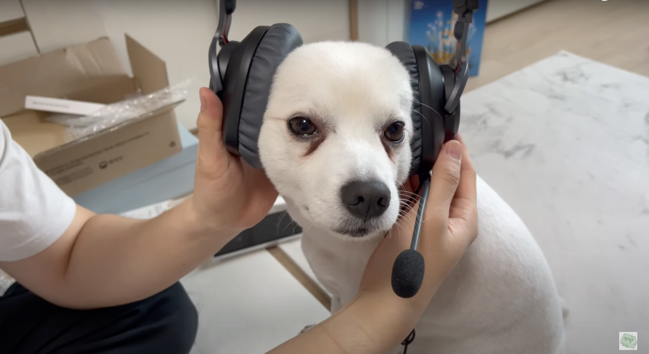 저희 멍멍이조차 탐내는 헤드폰이라능! 제가 게임할 때마다 쓰고 있는데 가격대치고 소리가 빵빵한 게 게임에 몰입할 수 있고, 마이크 감도 또한 상당히 좋은 편입니다. 제가 실제로 녹음도 해봤는데 주변 소리가 거의 들어가지 않고, 제 목소리만 아주 선명하게 녹음되었습니다.