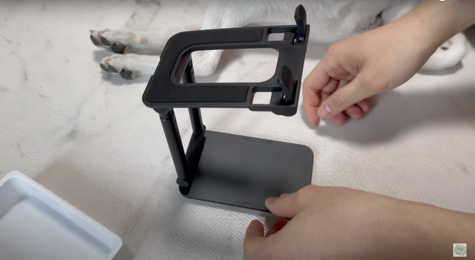 구성품은 거치대 하나만 있구요. 밑면을 보시면 실리콘 처리가 되어서 바닥에 착 고정이 되는 방식입니다. 어떤 바닥에 놓아도 흔들리지 않는 편안함!
