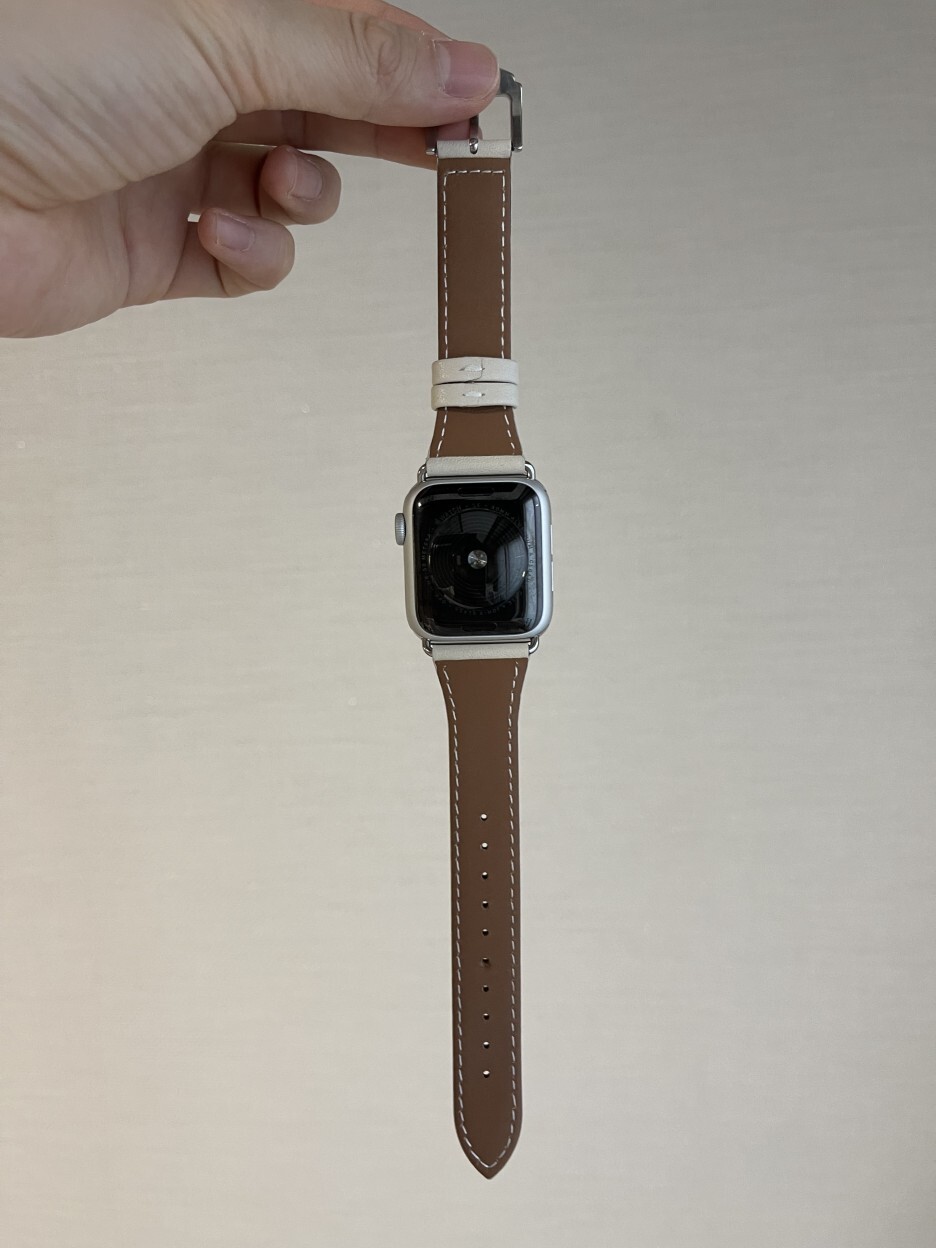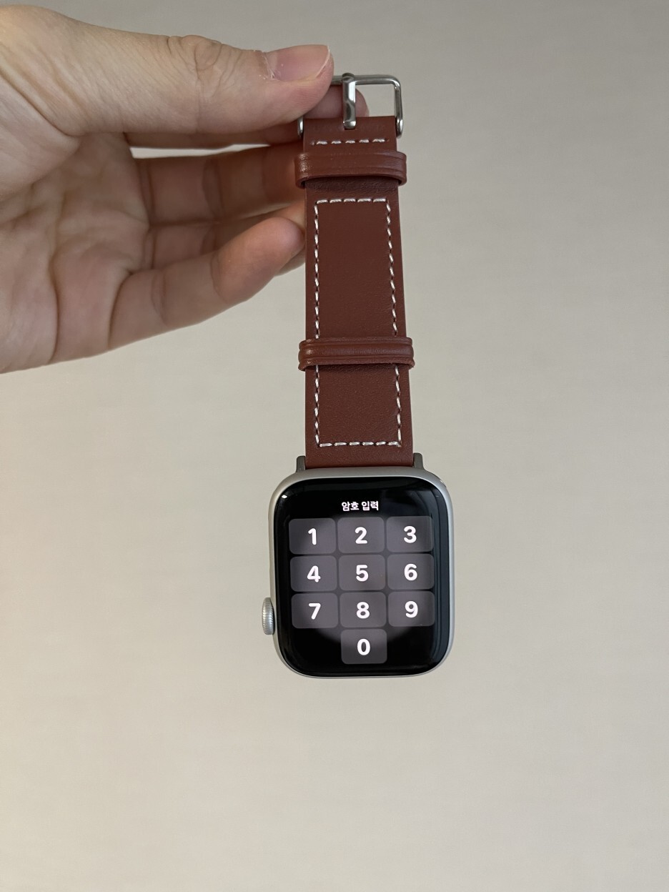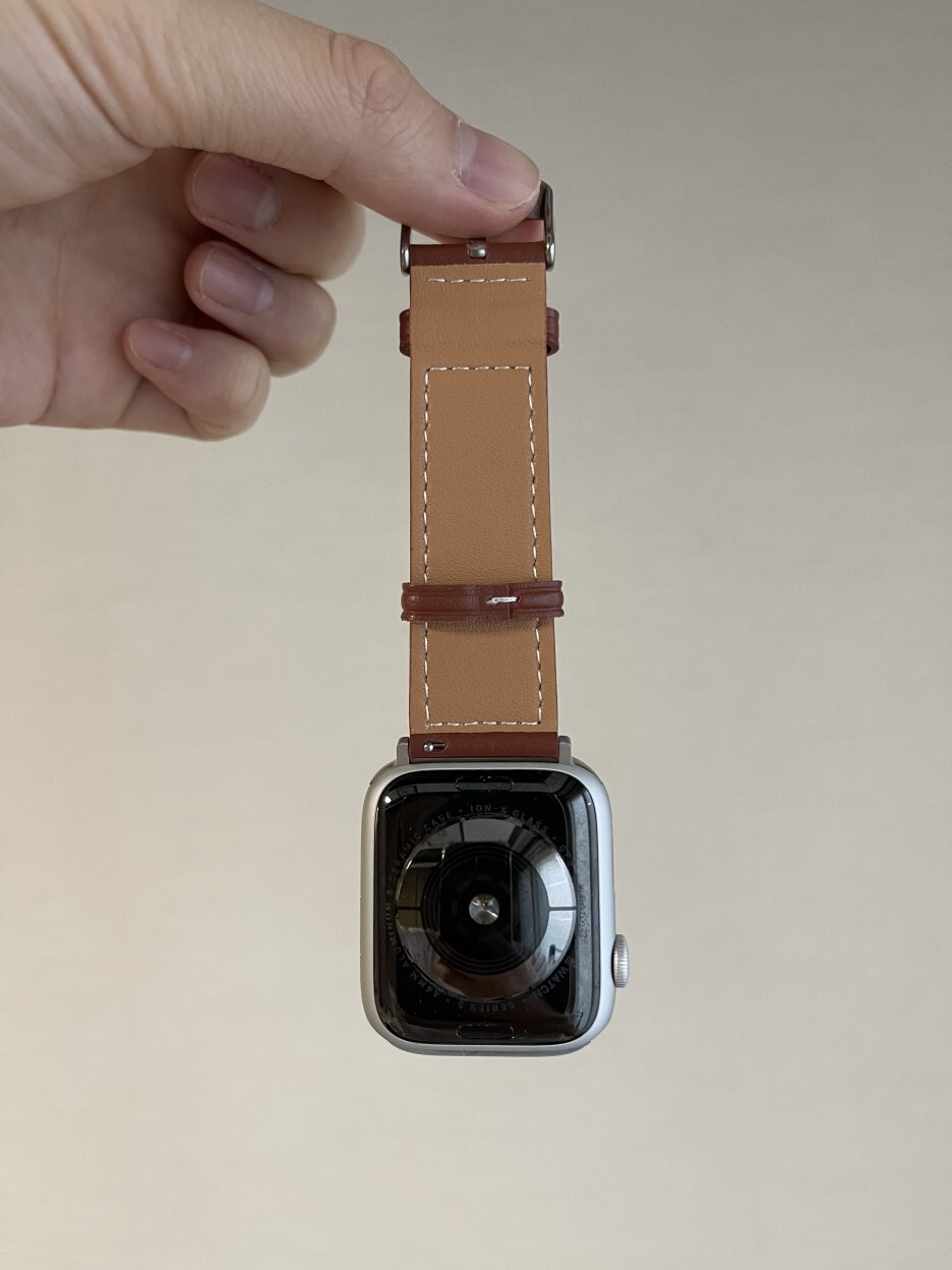 제가 갖고 있는 애플워치5 실버 알루미늄과 마치 한 몸이었던 것처럼 아주 잘 어울리네요. 아직 사용하지 않은 가죽 제품이라 빳빳하긴 한데 쓰다 보면 에이징 되어 점점 부드러워지겠죠.