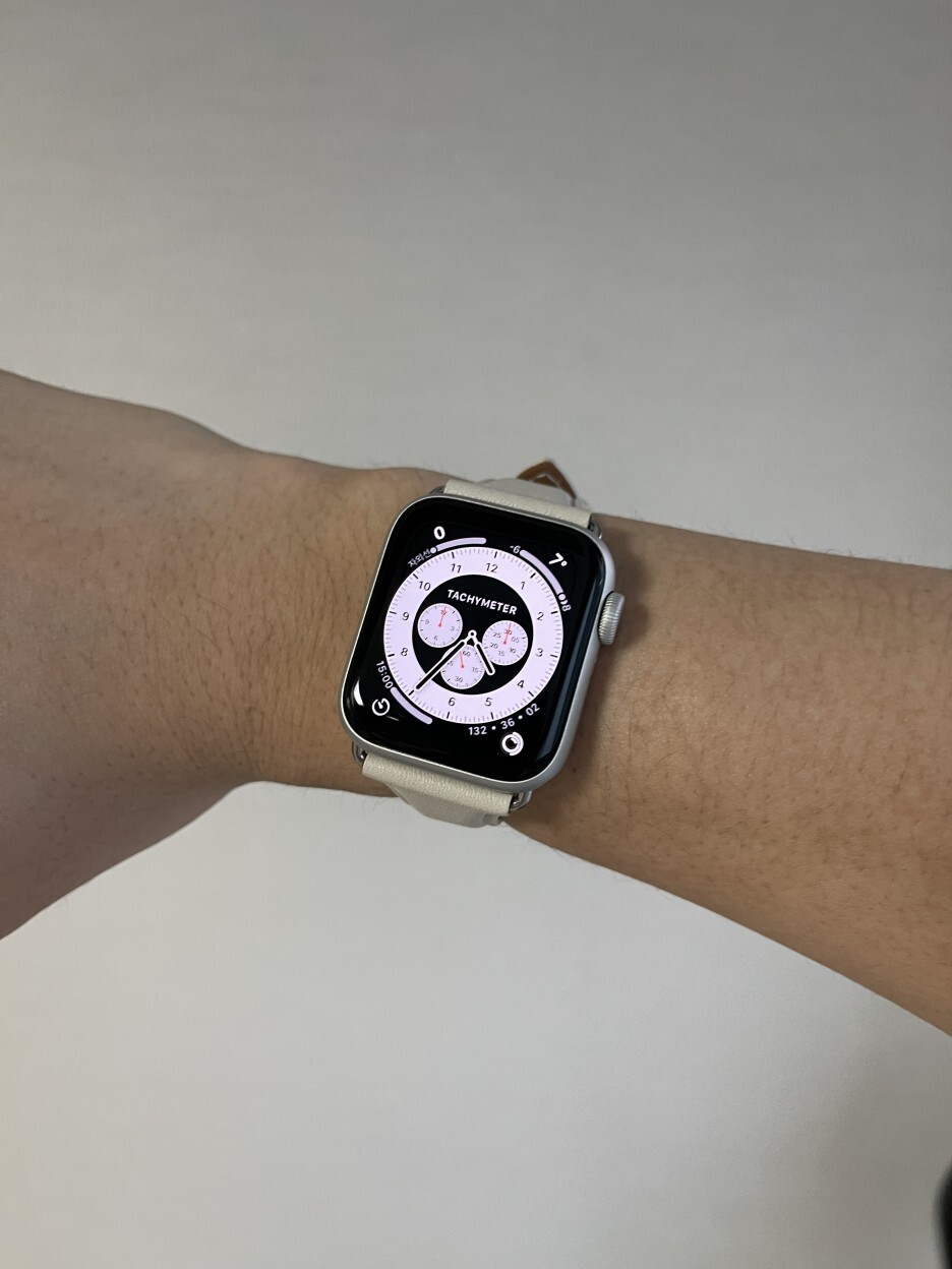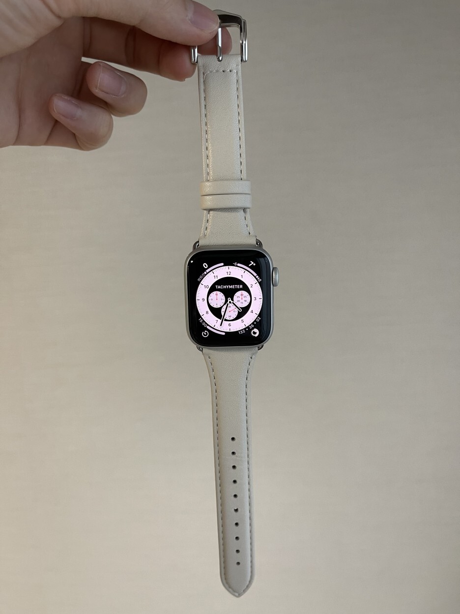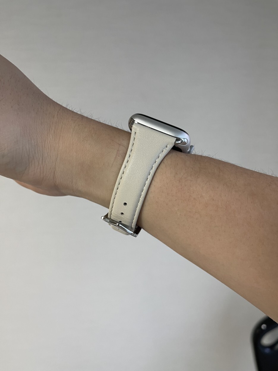 제가 갖고 있는 애플워치5 실버 알루미늄과 마치 한 몸이었던 것처럼 아주 잘 어울리네요. 아직 사용하지 않은 가죽 제품이라 빳빳하긴 한데 쓰다 보면 에이징 되어 점점 부드러워지겠죠.