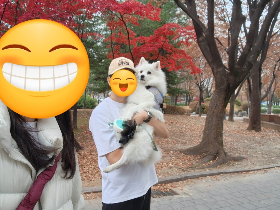 천천히 흐르는 가을의 단풍놀이를 저희만 즐길 수 없죠. 동네에서 저희집 막내 멍멍이 리톨희도 함께 단풍놀이를 즐겼습니다. 강아지는 단풍이 이쁘던 말던 그저 냄새 맡기에 바쁘네요.
