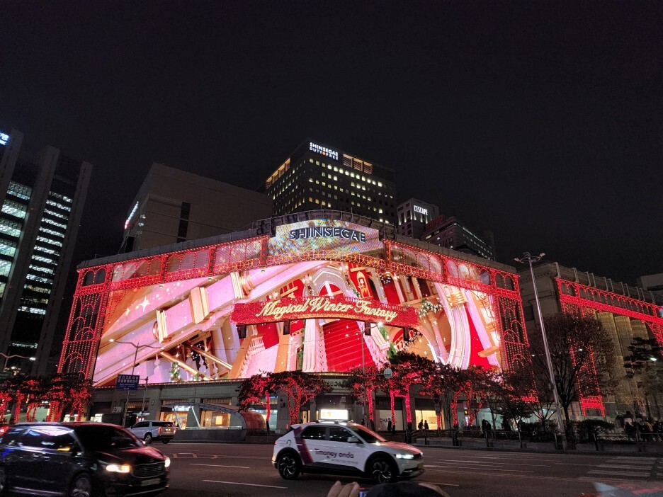 남산에서 내려와 저녁을 먹고 잠시 길을 걸으니 올해도 변함없이 신세계 본점의 미디어 파사드가 번쩍이고 있습니다. 개인적으로는 작년보다 더 이쁘게 꾸며놓은 거 같아요.