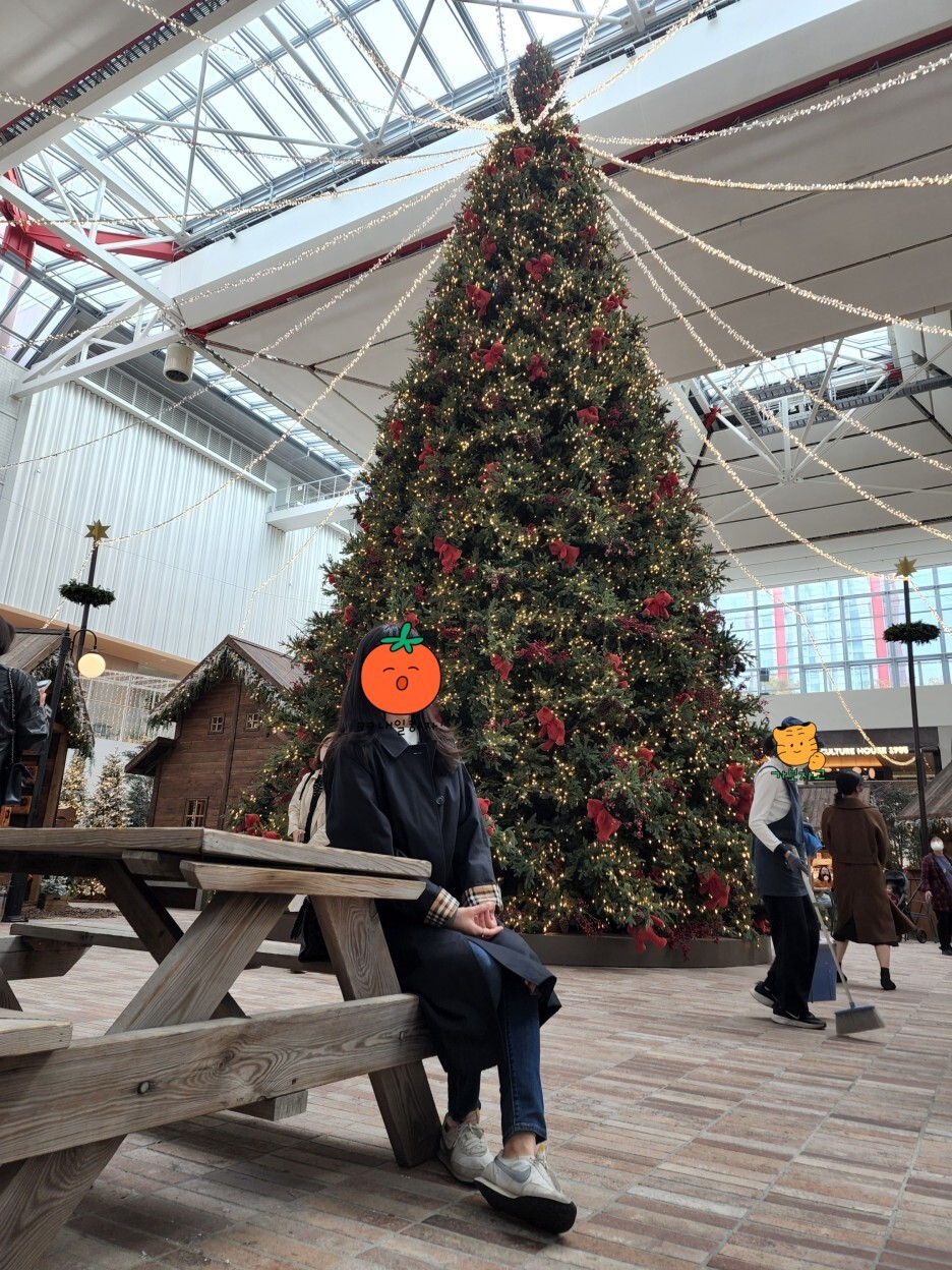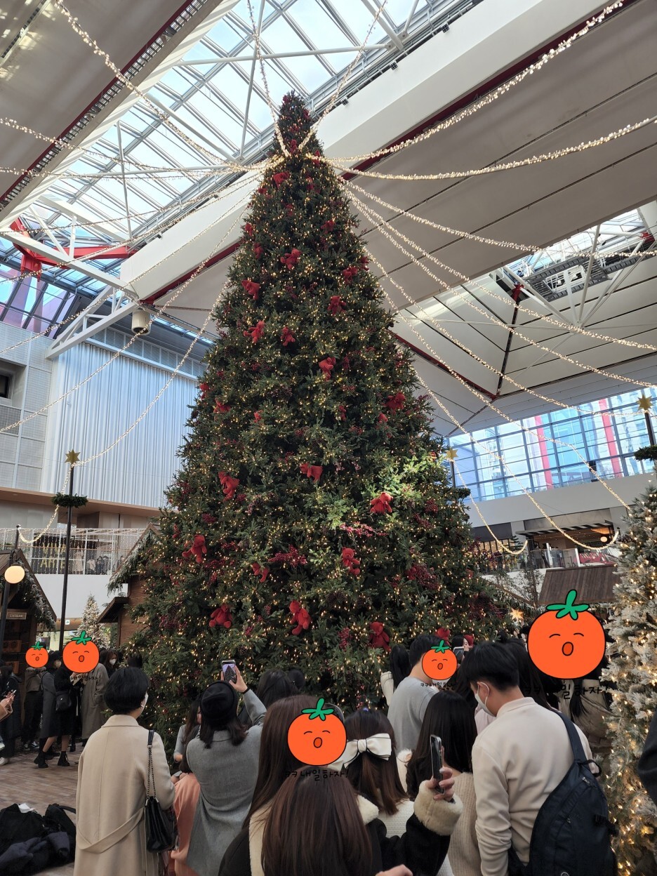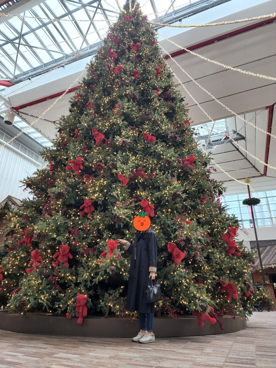 충분히 구경했지만 이대로 집에 가기 아쉬워서 다시 한번 크리스마스 트리에 서서 사진을 찍어보았습니다. 제가 지금껏 봤던 크리스마스 트리 중 가장 큰 게 아닐까 싶네요. 그래서 보는 맛도 있고 사진 찍는 맛도 있는 아주 뜻깊은 경험이었습니다.