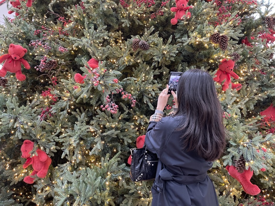 크리스마스 트리가 크기 때문에 굳이 가까이서 찍지 않고 멀리서 찍어도 트리가 이쁘게 나오는 건 아주 좋은 거 같아요.