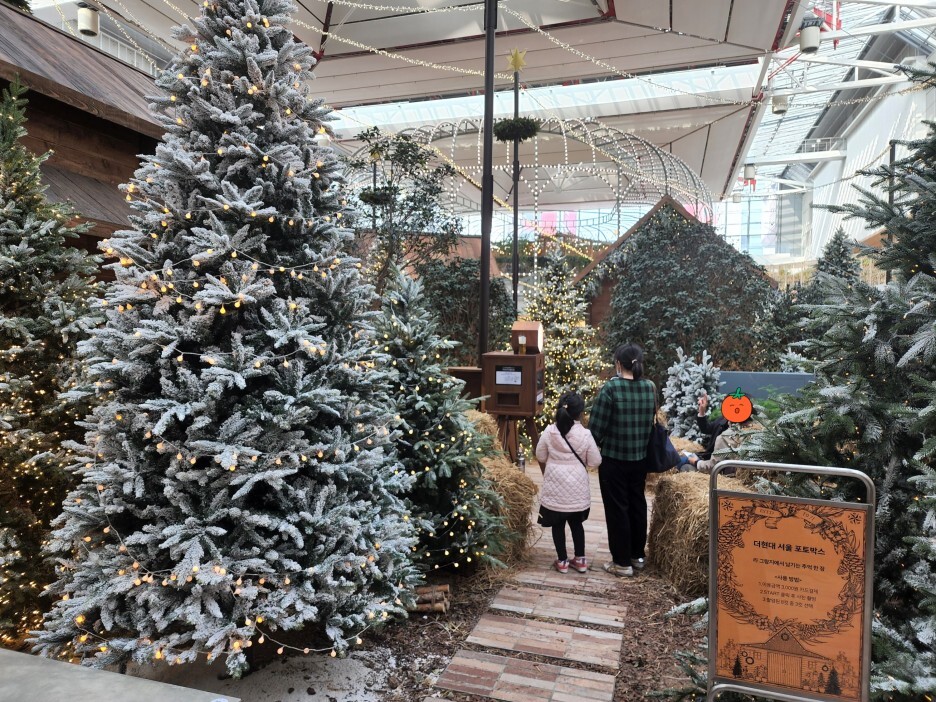 크리스마스 트리 앞에서 사진 찍어도 너무 이쁜데요. 사진을 더 이쁘게 찍을 수 있는 공간이 따로 마련되어 있습니다. 사진에서 보시는 것과 같이 '포토박스' 안내문이 있는 곳을 찾아가시면 됩니다.
