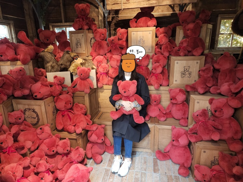 내부가 정말 다채롭게 꾸며졌어요. 각 오두막마다 컨셉이 다 다르고 인테리어 역시 너무나도 특색 있게 꾸며졌습니다. 개인적으로 가장 맘에 드는 오두막은 빨강 곰돌이로 가득한 곳이었습니다.
