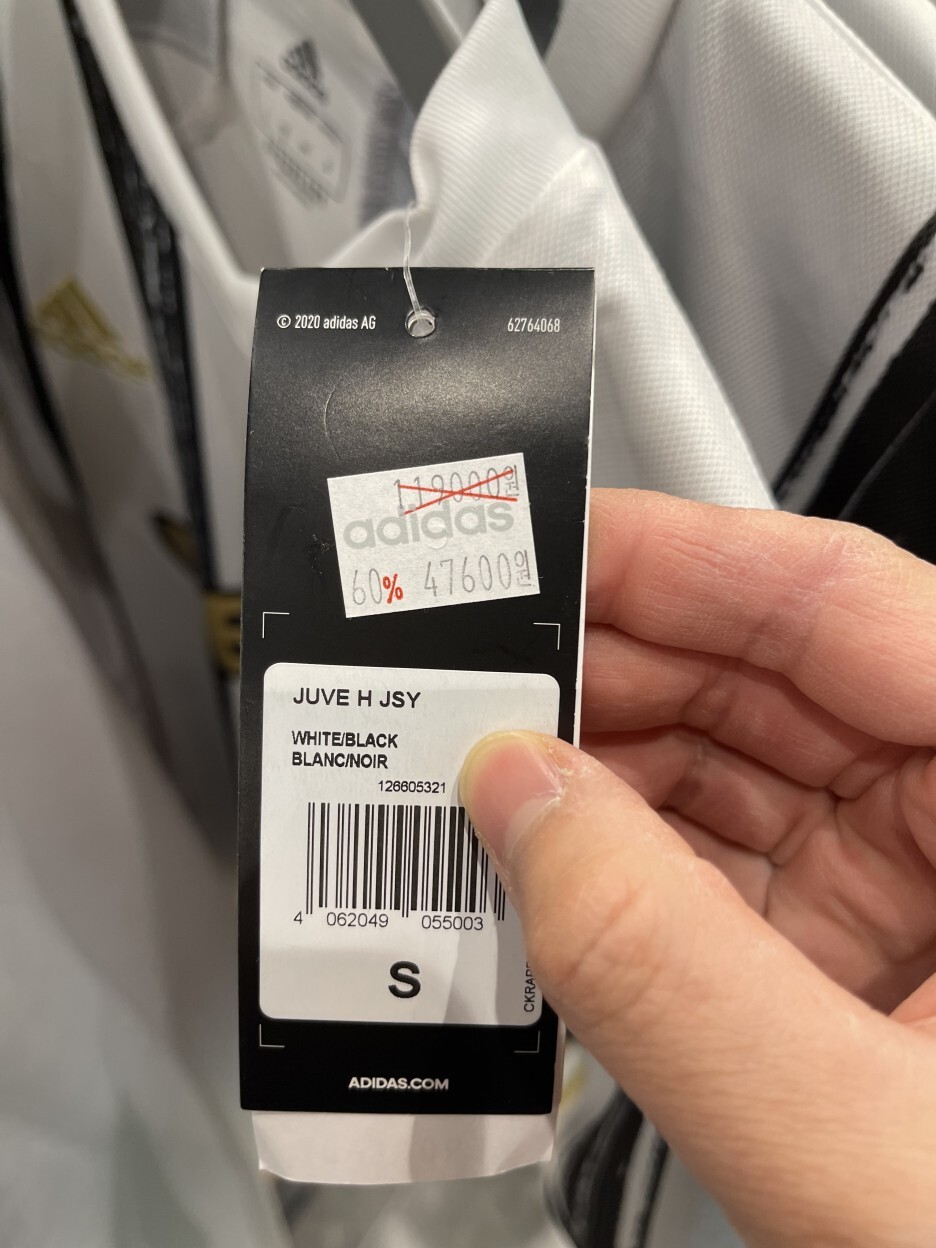 그리고 살까 말까 정말 고민을 많이 했던 유벤튜스 유니폼. 다른 아디다스 아울렛 매장은 축구 유니폼이 아예 없는 곳도 있는데요.