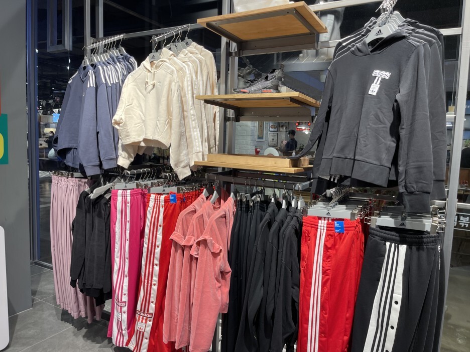 당연히 여성분들을 위한 아디다스도 제대로 준비되어 있습니다. 사실 남성보다 여성 옷이 더 이쁜 게 많아요. 상당히 부러웠습니다.
