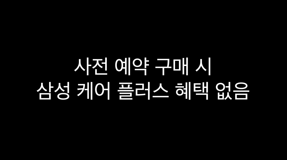 사전 예약하시는 분들은 아쉽게도 삼성 케어 플러스 혜택을 이번에는 받으실 수 없습니다. 그동안 사전 예약으로 삼성 케어 플러스는 꼭 챙겨줬는데, 이번에는 일반 구매에만 혜택을 주네요. 아쉽습니다.