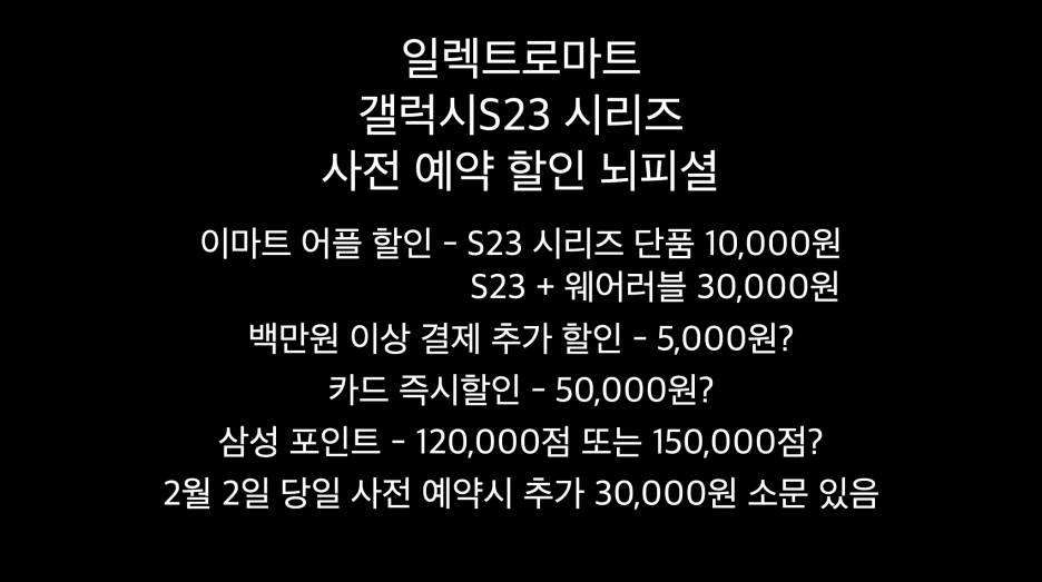 마지막으로 제 뇌피셜로 정리하자면 일렉트로마트에서 S23 시리즈 사전 예약 구매 시 받을 수 있는 할인 예상은!