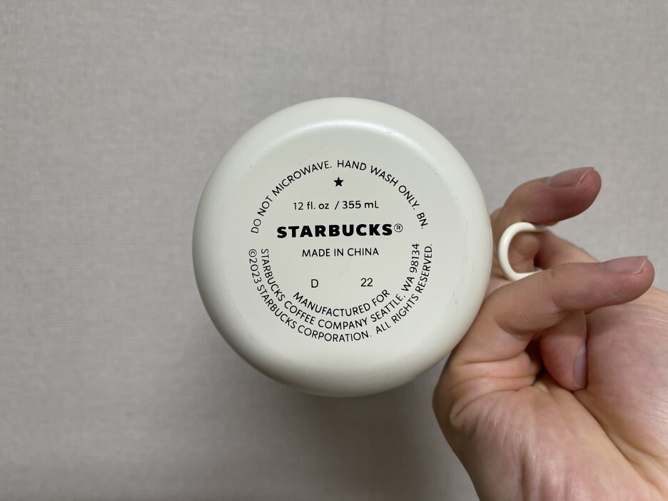 컵 용량은 355mL입니다. 가격은 2만 얼마였어요. 사실 스타벅스가 사악한 게 머그컵 가격이 결코 싼 게 아니거든요. 근데 또 디자인에 홀려서 사다 보면 바로 지갑 털리는 거죠.