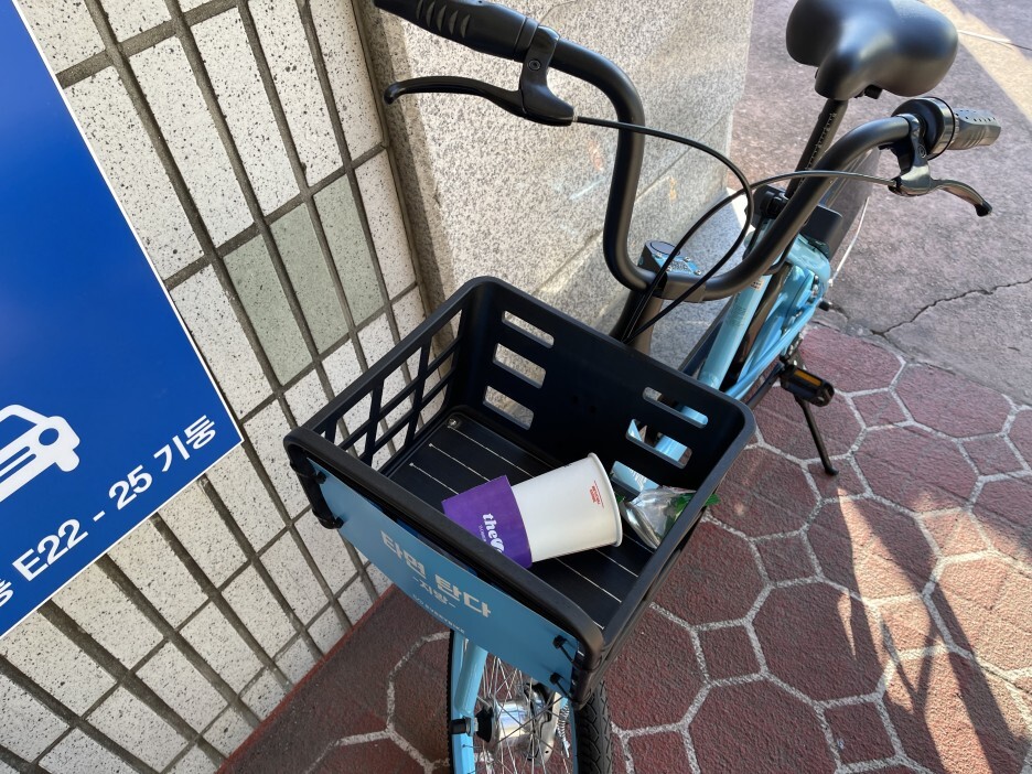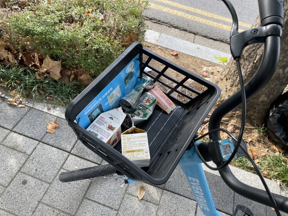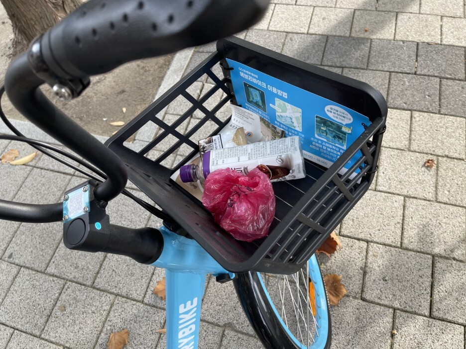 에브리바이크를 이용하면서 참 근본 없다고 생각하는 게 자전거 바구니에 쓰레기가 그렇게 많습니다. 무슨 쓰레기통마냥 쓰레기 버리는 사람이 한둘이 아니라는 뜻이겠죠. 참 근본 없다.