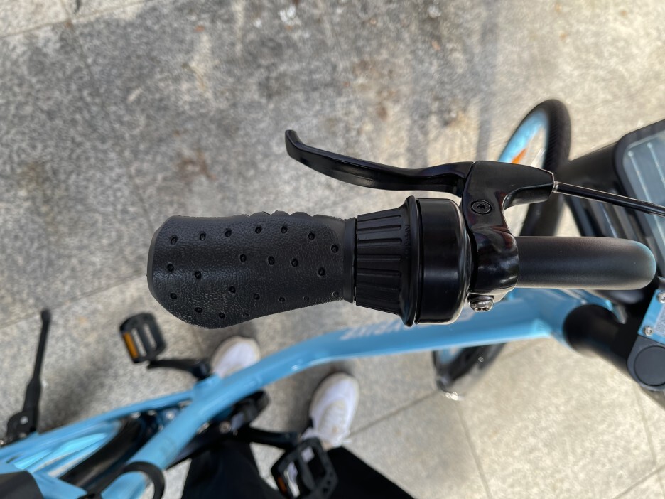 지도에서 신형 3단 기어라고 적혀 있더니 실제로 자전거를 보니 오른쪽 손잡이 쪽에 3단 기어가 있네요. 확실히 기어가 있는 자전거가 잘 나갑니다. 페달 밟는 것도 쉽고 속도도 더 잘나요.