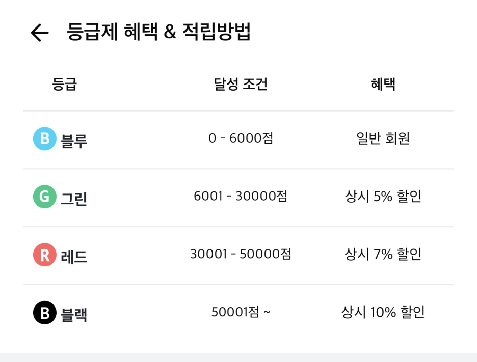 등급에 따라 혜택도 다르니까 참고하시구요.