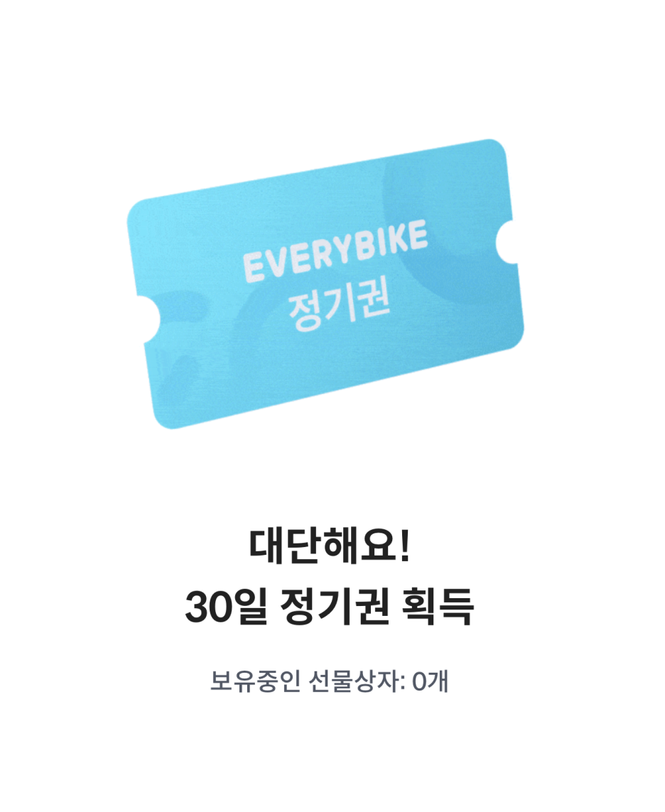 선물상자와 포인트를 이용해서 선물 뽑기도 할 수 있어요. 뽑기 상품은 포인트부터 커피 기프티콘, 정기권까지 획득할 수 있어요. 저도 30일 정기권 한번 뽑아봤네요.