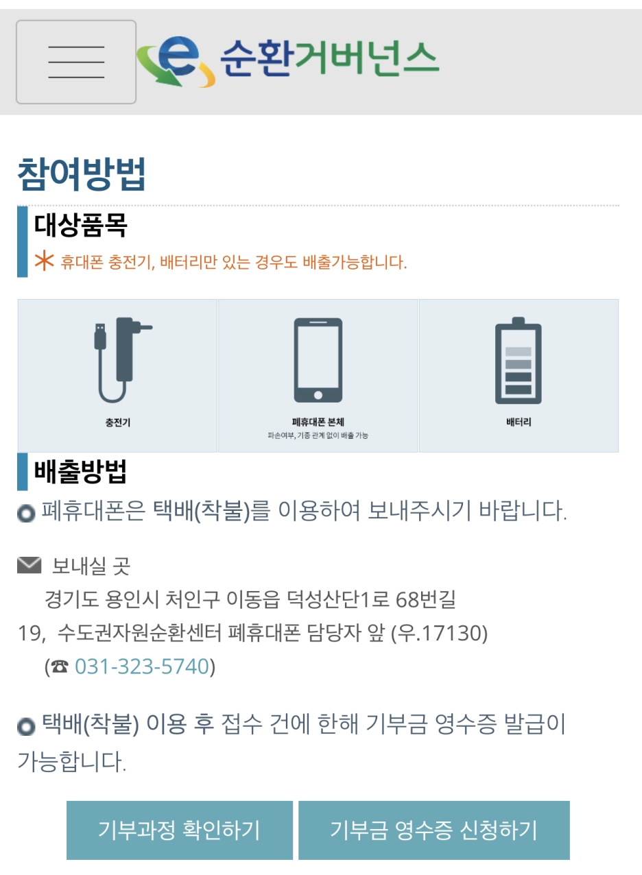 대상 품목은 집에서 놀고 있는 스마트폰이나 휴대폰뿐만 아니라 배터리나 충전기 모두 해당됩니다. 그리고 휴대폰은 고장이 나도 상관없어요.