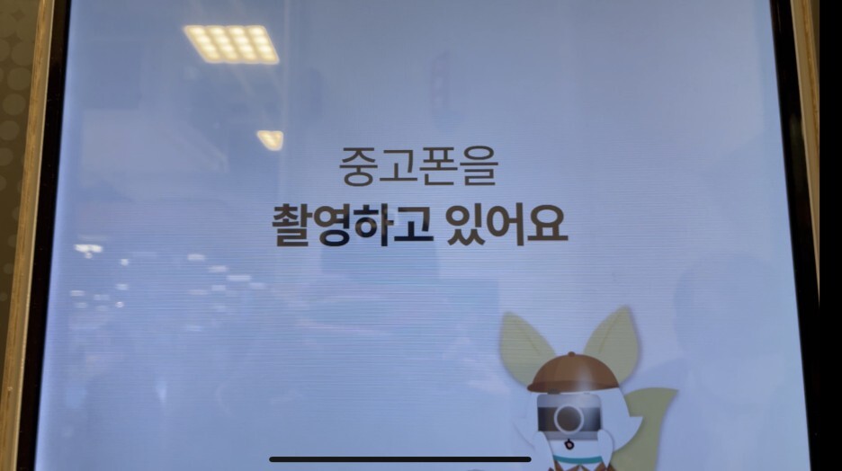 그리고 나면 중고폰을 촬영하고 있다는 메시지가 뜨는데요. 이때 시간이 조금 걸립니다. 어차피 폐휴대폰인데 촬영하고 뭐 할 게 있나 싶었는데 나름 자체적으로 확인하는 게 있나 봐요.