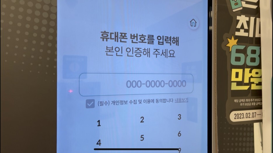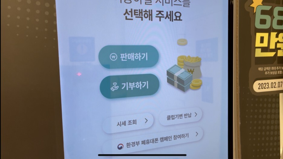 본인 인증을 마치셨다면 이제 폐휴대폰을 넣어야 하는데요. 넣기 전에 휴대폰에 붙어 있는 악세사리 같은 거 다 제거해 주셔야 합니다.