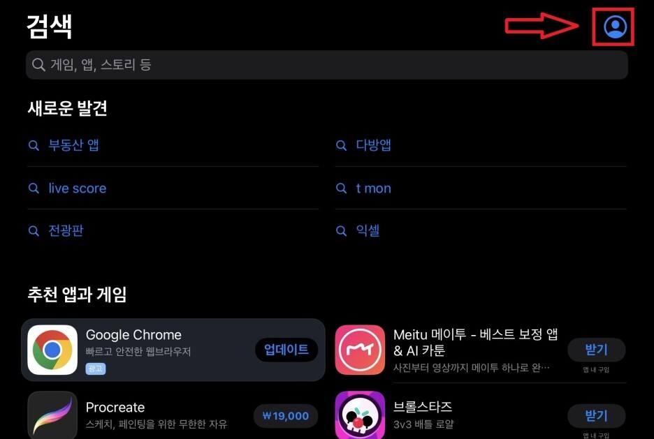 그럼 애플 미국 계정으로 바꾸기 위해서는 먼저 앱스토어 어플에서 본인 프로필을 눌러주세요.