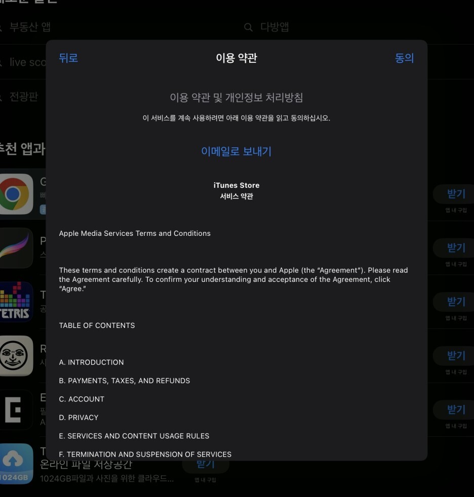 그럼 영어로 된 이용 약관이 나오는데요. 굳이 읽어볼 필요는 없고 빠르게 동의 버튼을 눌러줍니다.