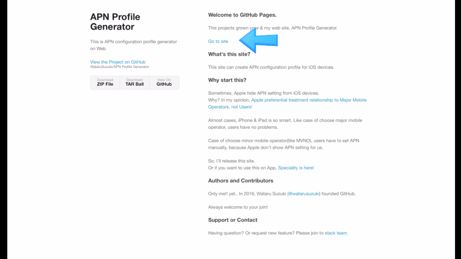 먼저 와따루 스즈끼라는 일본인이 만든 사이트에 접속하셔야 하는데요. 사이트에 접속하시면 사진과 같은 화면이 뜹니다. 가장 위에 있는 'Go to site'를 눌러주세요.