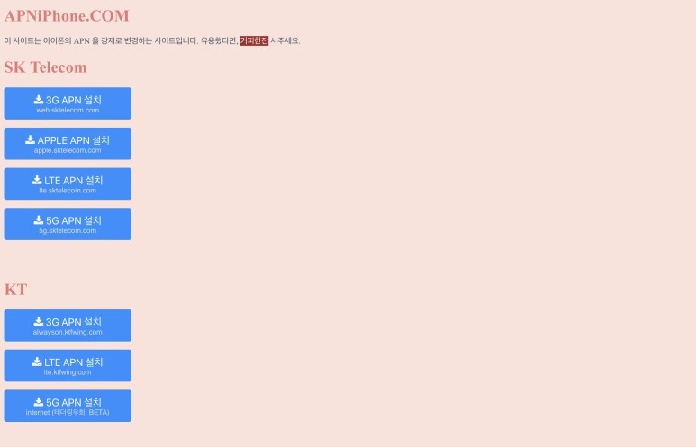 APNiPhone, 한국인이 만든 한국 통신사 APN을 제공하는 유일한 사이트였는데요. 이유는 알 수 없지만 이제는 더 이상 접속할 수 없습니다.