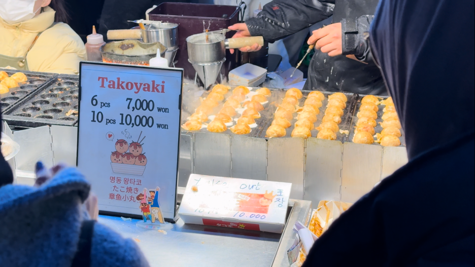 오사카의 명물, 타코야끼 역시 명동에서 맛보실 수 있습니다. 6개 7천 원. 오사카보다 비싼뎅?