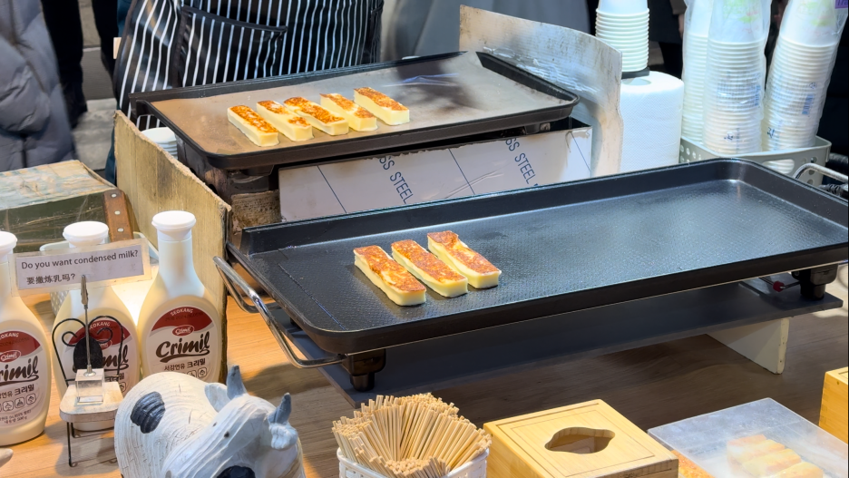 다음은 치즈 구이. 1개 5천 원. 치즈 구우면 맛있긴 한데...