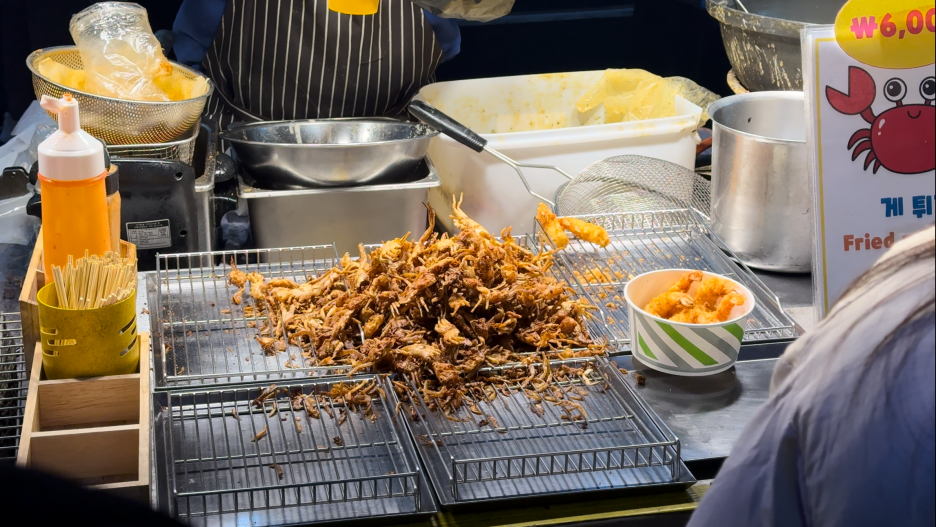 즉석에서 새우를 튀기는 모습도 볼 수 있는데요. 새우 튀기는 소리만 들어도 군침이 돕니당.