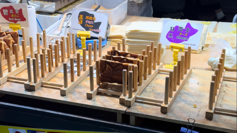 가장 먼저 눈에 띈 건 일본에서 넘어온 붕어빵, 타이야끼였습니다. 1개 4천 원. 솔직히 가격도 가격인데 우리나라의 붕어빵이 있는데 굳이 일본의 타이야끼를 먹을 이유는 전혀 없어 보입니다. 그리고 일본보다도 비싼데염...