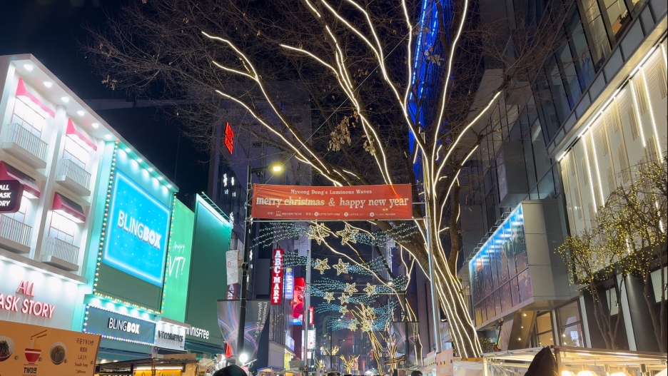 지난 코로나 시기에는 그 사람 많은 명동이 휑해서 연말 분위기가 제대로 나지 않았는데 코로나가 끝난 지금 명동은 사람으로 북적북적, 아주 미어터질 정도로 호황을 누리고 있습니다.