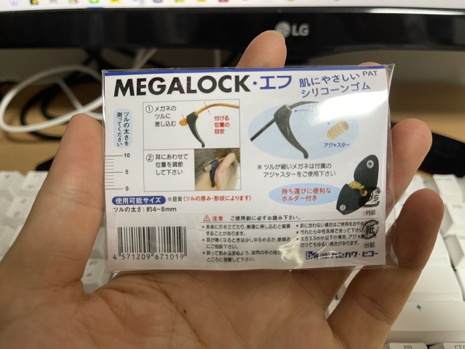 양쪽에 이런 식으로 넣어주면 끝! 넣기만 하면 세게 흔들어도 빠지지 않아요. 다만 안경을 벗을 때 귀 고무가 빠지는 경우가 왕왕 있으면 그 부분만 주의하시면 됩니다.