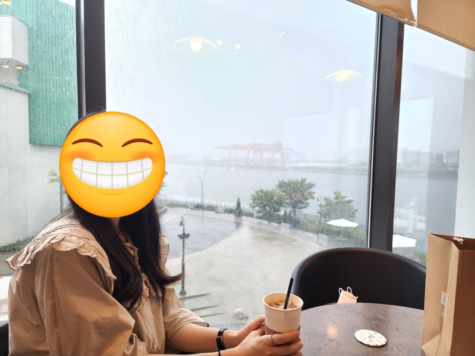 김포아울렛의 장점은 역시 시원하게 뚫린 아라뱃길을 벗삼아 커피와 빵을 즐길 수 있다는 점인데요. 창가 자리가 꽤나 여유 있고, 통유리창이 시원하게 배치되어 있어서 어느 자리에 앉든 아라뱃길을 볼 수 있습니다.