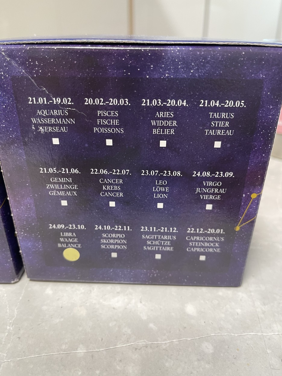 다만 확실히 독일은 독일이다. 투박하지만 만듦새가 아주 좋아요. 게다가 나의 별자리, 사랑하는 이의 별자리가 새겨진 머그컵으로 매일 물 또는 커피를 마실 수 있으니 이 얼마나 일상의 소소한 즐거움입니까.