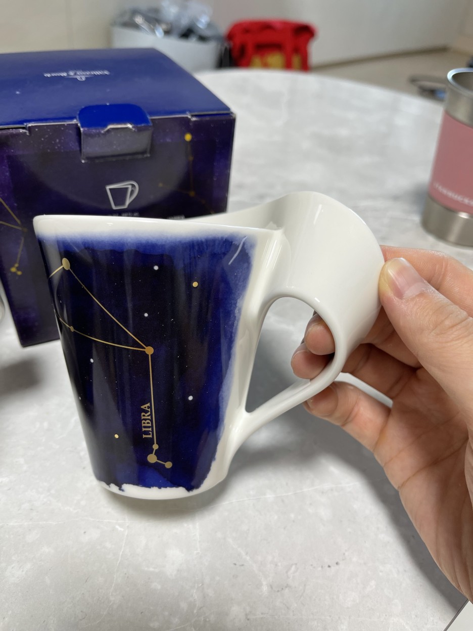 이야이야~ 사실 머그컵의 재질이 다 거기서 거기 아니겠습니까. 디자인으로 승부 보는 게 바로 머그컵인데요. 이 컵으로 말할 거 같으면 별자리가 새겨져 있습니다. 누구 별자리? 내 별자리.