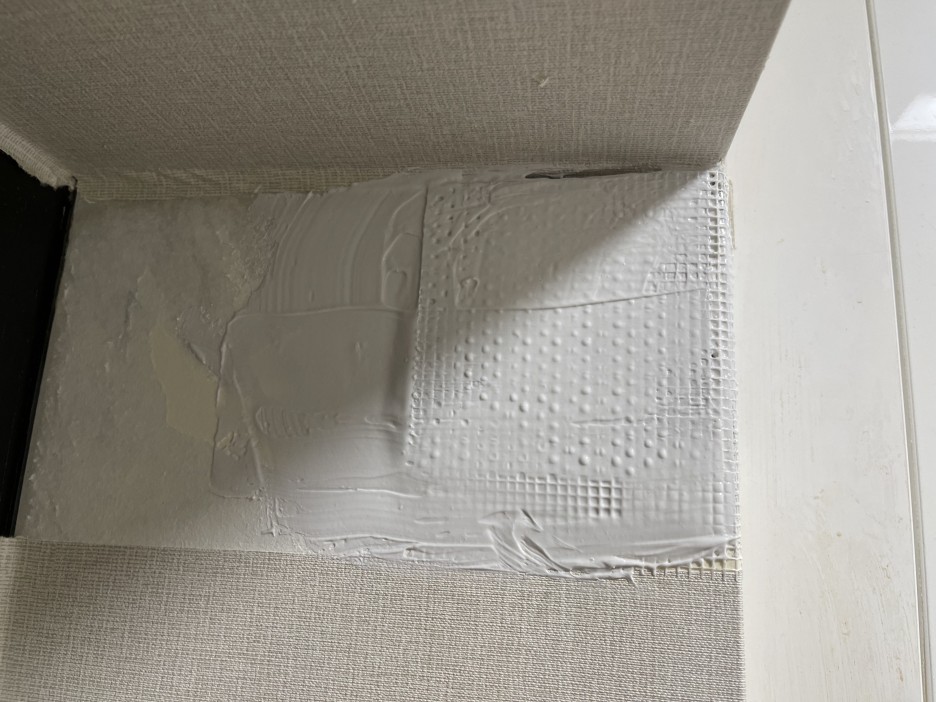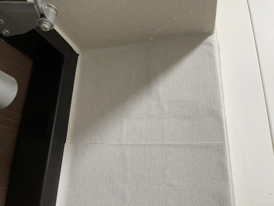 저는 넉넉하게 이틀 정도 잘 말려줬는데요. 그 위에 벽지를 붙여주면 구멍 난 벽이 아주 잘 메꿔진 걸 알 수 있습니다. 물론 살짝 어색한 건 숨길 수 없는데요. 저처럼 똥손도 이렇게 하면 최소한 구멍을 메꿀 수 있다!