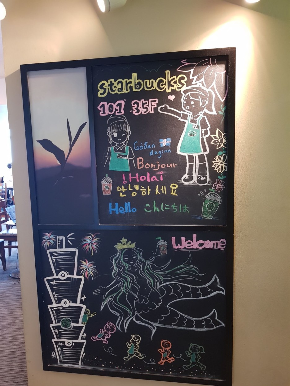 어쨌든 타이베이 명물 101 빌딩 35층에는 스타벅스가 있습니다. 사실 101 빌딩 꼭대기에 전망대가 있어요. 근데 좀 비싸요. 굳이 101층까지 올라갈 필요가 있습니까? 35층도 높잖아요. 35층 스타벅스에 가서 커피도 마시고 타이베이도 구경하고. 꿩 먹고 알 먹고.