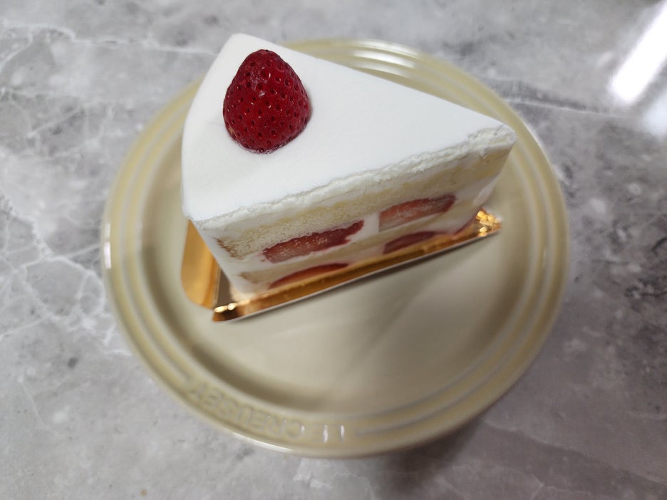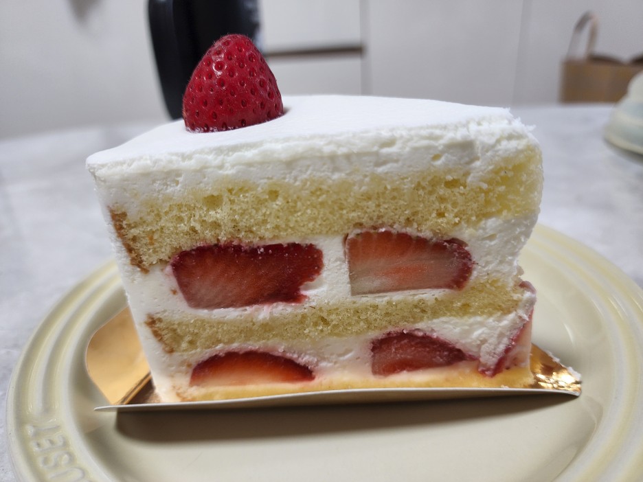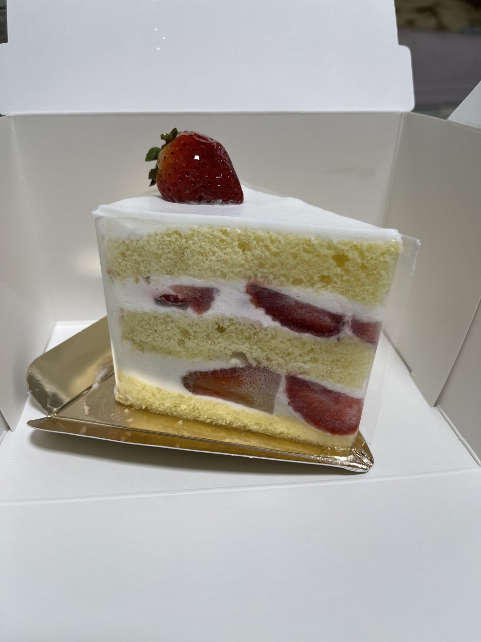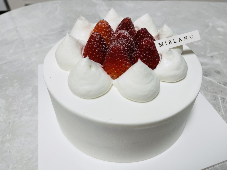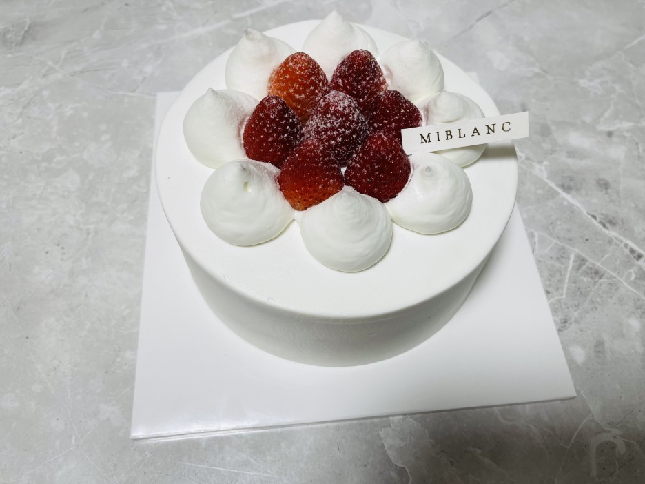 이게 바로 미블랑의 자랑, 딸기 생크림 케이크입니다. 딸기 케이크라는 이름에 걸맞게 딸기가 듬뿍 들어 있는 게 이 케이크의 매력입니다.