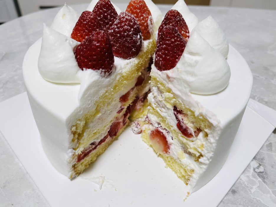 케이크 안쪽에도 딸기가 송송송 박혀 있습니다. 딸기 케이크라면 딸기가 이 정도는 있어야 하지 않겠어요?!