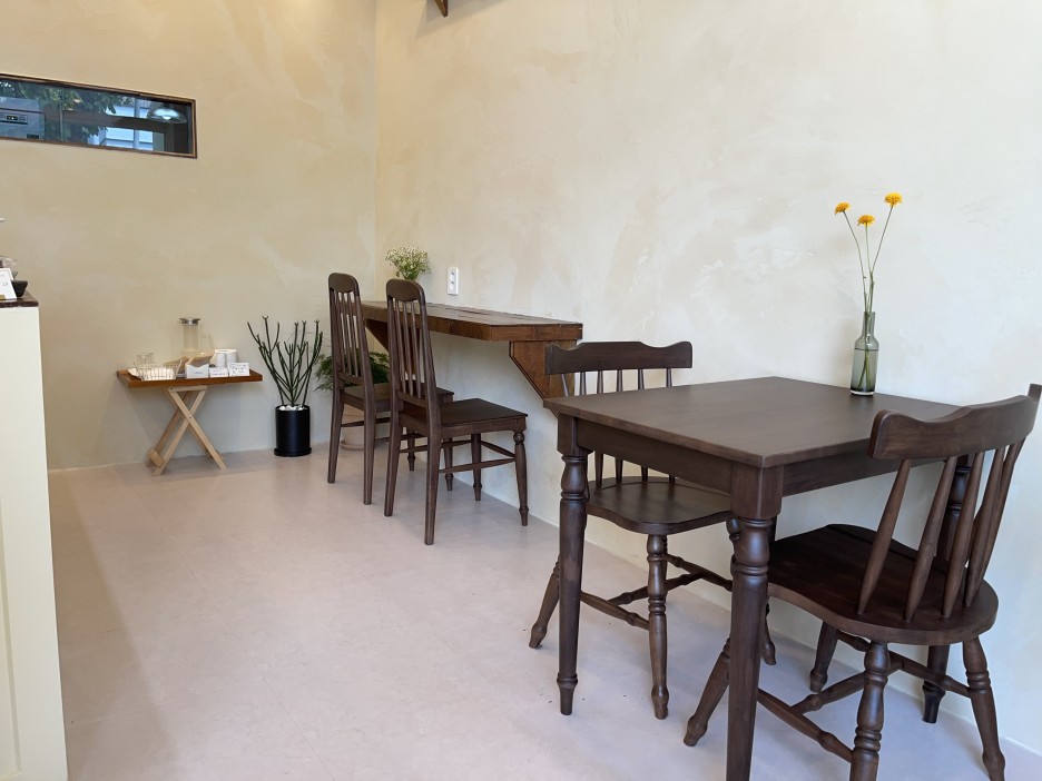 가게가 넓지 않지만 테이블이 준비되어 있어 커피와 디저트를 즐기실 수 있습니다.