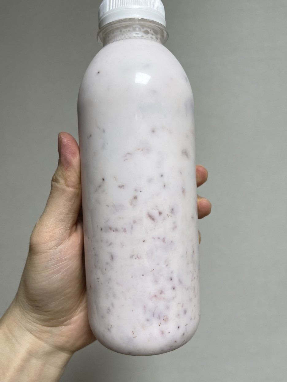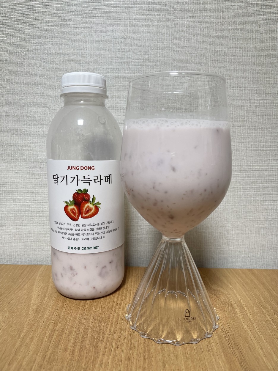 100% 생딸기와 우유, 건강한 설탕 자일로스의 환상적인 조화!!! 첨가물이 들어가지 않아 당일 섭취 권장! 이러한 문구만 봐도 얼마나 신선한지 느껴지지 않습니까.