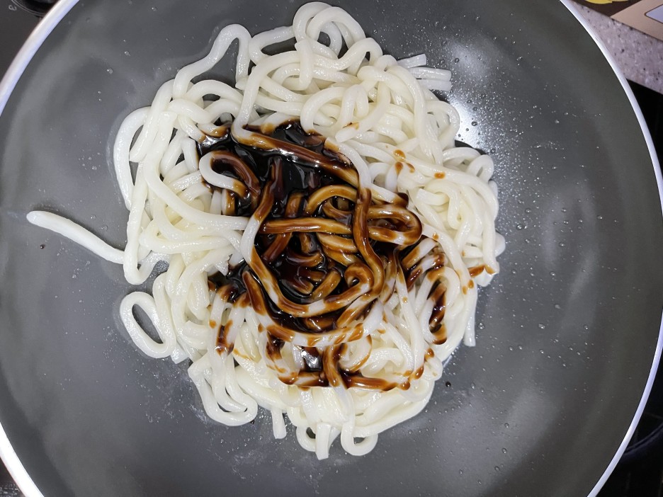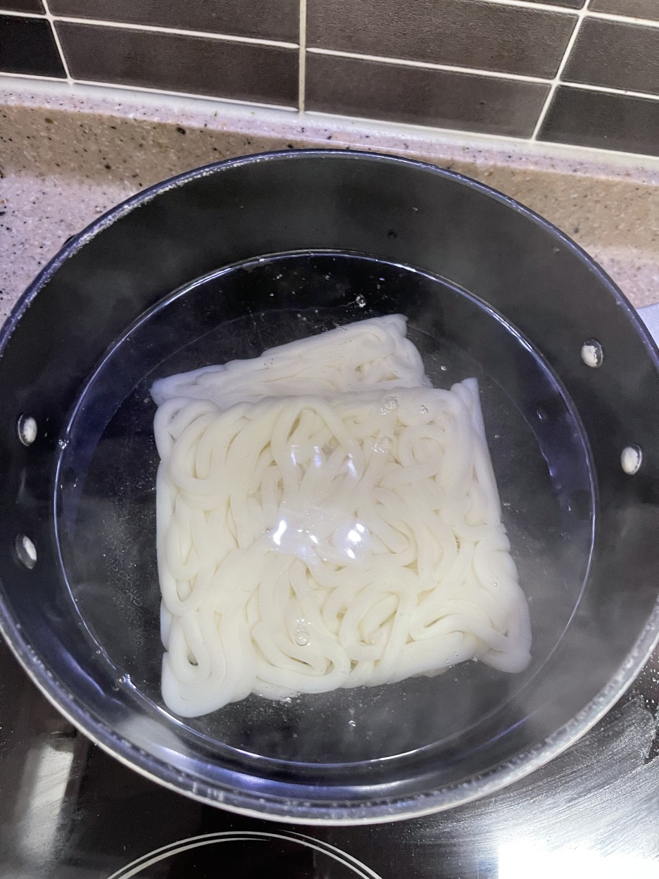 그냥 라면 끓이는 것처럼 끓는 물에 우동 면 넣어 부러~